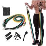 - Complete 11-Piece Set – Includes 5 resistance bands, 2 foam handles, 2 ankle straps, 1 door anchor & storage bag.