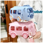 - The Portable Detachable Bus Shaped Water Bottle features a creative and appealing bus design that sparks the imagination of children. The vibrant colors and adorable details make it a toy-like jug that kids will love to drink from.